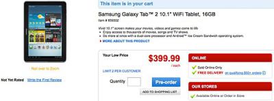 Samsung Galaxy Tab 2 10.1 заказать до начала его официальных продаж. Тем, кто захочет оформить предзаказ, предлагается выгодная цена в 399 долларов США и 50 Гбайт дискового пространства облачного сервиса