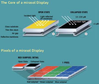 Mirasol, однако массового внедрения технологии не предвидется. Пока ни у одного производителя нет производственных мощностей для широких поставок экранов