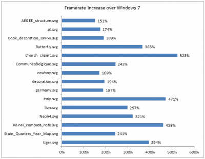 По этому принципу была улучшена скорость визуализации 2D-геометрии в различных элементах интерфейса. Самый лучший показатель прироста производительности отмечается там, где используются технологии HTML5 Canvas и SVG – от 150% до 520%. Приятной новостью для тех, кто много работает с изображениями, станет ускорение рендеринга практически всех известных форматов изображений. С помощью использования инструкций SIMD улучшено декодирование таких популярных форматов, как JPEG, PNG и GIF. Например, обработка 64 тестовых изображений в