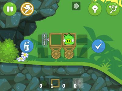 Android. В этой игре предлагается проходить миссии в роли зеленых поросят. Этот выпуск игры отличается от своих предшественников тем, что теперь не требуется стрелять из рогатки. Разработчики предложили игрокам новую стратегию игры – строительство транспортного средства.