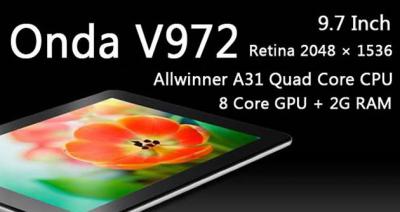 Onda V972 получит IPS дисплей диагональю 9,7 дюймов с высоким разрешением 2048 x 1536 пикселей. Его работа будет осуществляться на четырехъядерном процессоре