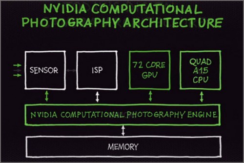 NVIDIA Tegra 4 стала новая архитектура обработки фотографии с автоматическим созданием HDR не только для фото, но и видео. Этому поспособствовало объединение графического ускорителя и основного вычислительного процессора с процессором обработки данных сенсора камеры. В результате мы сможем делать фотографии с полным спектром цвета и яркости без засветов и излишних затемнений.