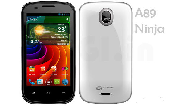 Micromax A89 Ninja, поддерживающий работу одновременно двух активных SIM-карт, оснащен слотом для карт памяти microSD и тыловой камерой с матрицей разрешением 3 мегапикселя. За питание и автономную работу