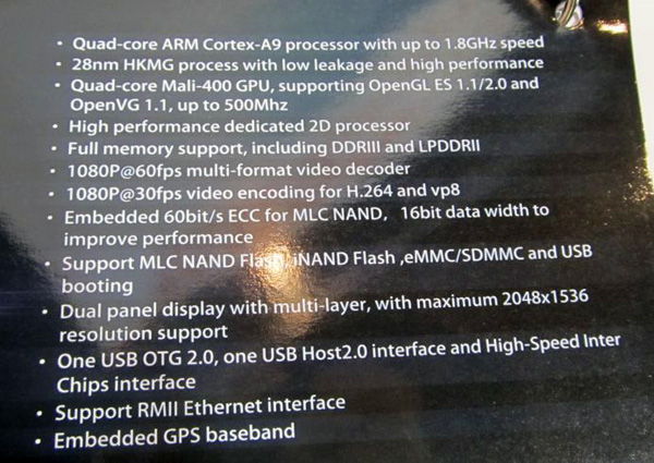 Rockchip RK3188. Напомним, она включает четырехъядерный процессор с тактовой частотой 1,8 Ггц на базе ARM Cortex-A9 и графический ускоритель