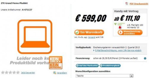 ZTE Grand S, оцененный в 629 евро, планшетный компьютер