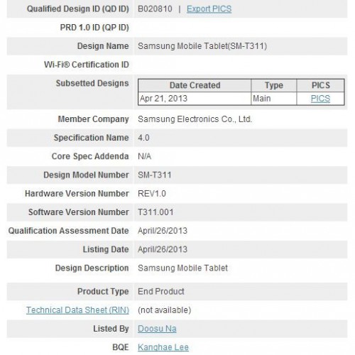 Bluetooth SIG – организации, что занимается вопросами стандартизации и сертификации Bluetooth-устройств. 26 апреля устройство было сертифицировано. Новый планшет, судя по утечкам из