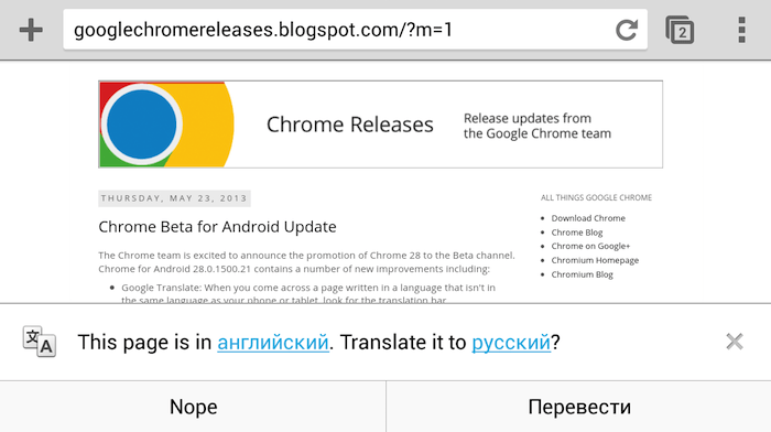 Chrome Beta 28 стало гораздо удобнее просматривать. Улучшения в интерфейсе улучшили эргономику вкладок на устройствах с небольшим экраном.