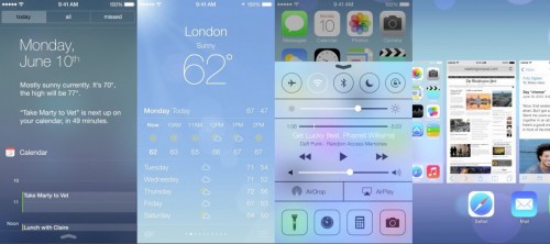 iOS 7 доступен также и с экрана блокировки. Он позволяет просматривать информацию без разблокирования смартфона. Приложение также обладает новой функцией «Сегодня», предоставляющей данные на весь текущий день, в том числе записи календаря, погоду и пробки.