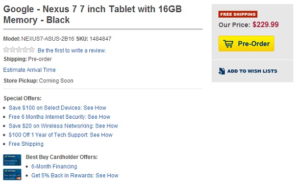 Best Buy. К сожалению, эта возможность предоставлялась на недолгое время. Стоимость на предзаказ устройства была заявлена в размере 229 долларов США и 269 долларов за версии с памятью объемом 16 Гбайт и 32 Гбайт соответственно. В продажу