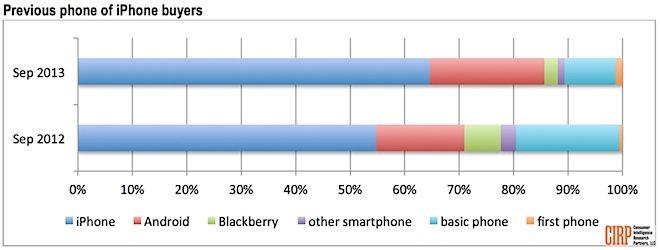 Apple, решивших обновить свои гаджеты более ранних выпусков. В этом году их количество достигло 65%. Кроме того, среди желающих приобрести “яблочный” смартфон оказалось более 20% пользователей Android-устройств. К сожалению, исследование не предоставляет данных относительно производителей мобильных устройств, которые теряют от изменения предпочтений их клиентов.