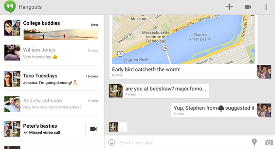 Google Hangouts позволяет создавать групповые текстовые и видеочаты. При запуске данного приложения, его авторизация происходит через