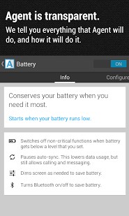 Agent сам отключает энергоемкие интерфейсы или приглушает звонок телефона, в указанное пользователем время. При помощи функции
