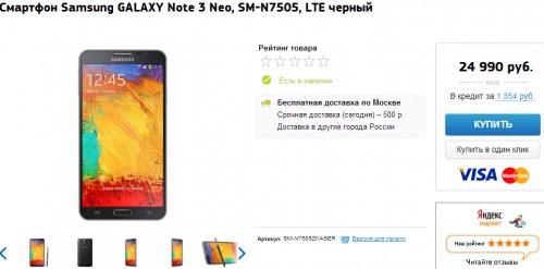 Note 3 Neo. Сегодня стало известно, что данную модель уже начали продавать в России. Покупатели могут уже сейчас приобрести мобильный аппарат через интернет-магазин компании