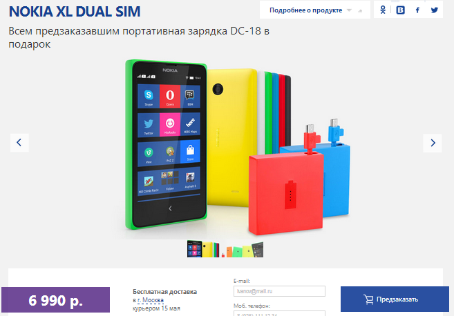Nokia XL по цене 6 990 рублей. Согласно предоставленной информации на сайте