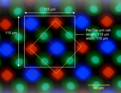 Galaxy S4) субпиксель зеленого цвета имеет овальную форму, а в