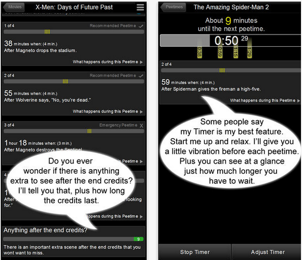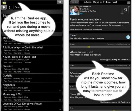 RunPee, которое будет сообщать владельцу аппарата о более подходящем времени для посещения уборной, не пропустив ключевой сцены.