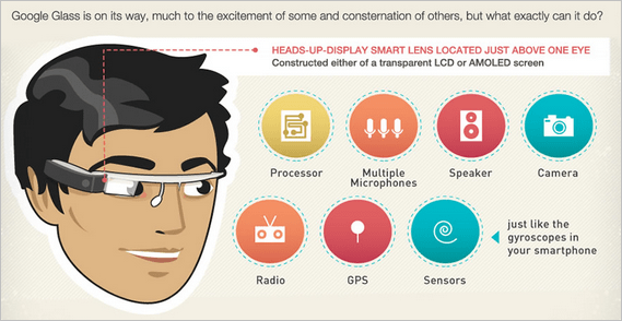 Google Glass получили функции телефона и мобильного аппарата с подключением к Интернету, а также камеру, способную фотографировать и записывать видео.