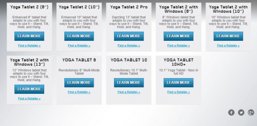 Lenovo Yoga Tablet 2 также найдется место наладонникам с 8-дюймовыми дисплеями и планшетам покрупнее в 10-дюймовом форм-факторе. Вместе с тем производитель намерен представить топовое 13-дюймовое универсальное устройство под названием