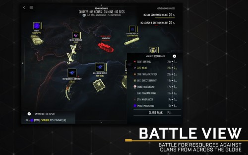 War Room собираются все данные отряда. Лучшие стрелки, наиболее живучие бойцы, популярное оружие и так далее. В этом же режиме отслеживается стратегия развития клана и моменты столкновений с другими армиями.