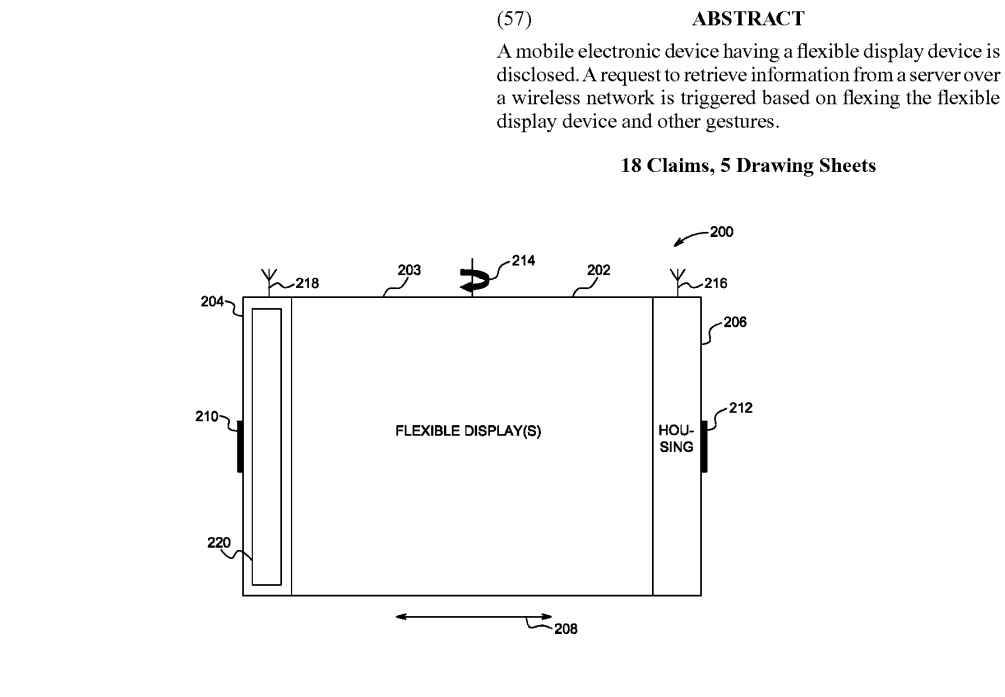 заявка №8,855,727 «яблочной» компании на регистрацию конструкции гибкого экрана с возможностью тактильной отдачи сенсорного экрана при нажатиях. В зависимости от изображения поверхность дисплея может изменять свою структуру и форму под имитацию кнопок или панелек.