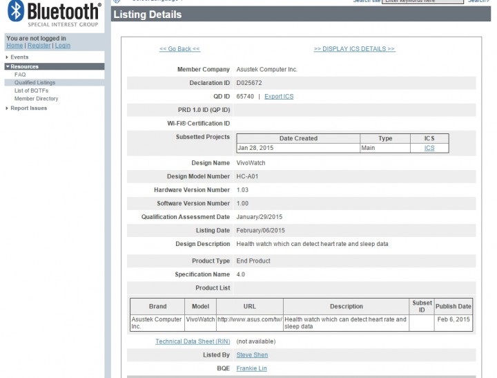 ASUS VivoWatch. Пока никаких подробностей о гаджете, кроме поддержки Bluetooth 4.0, в Сети не имеется. В описании говорится лишь о том, что это смарт-часы с функциями определения сердечного ритма и наблюдения за циклами сна. Скорее всего,