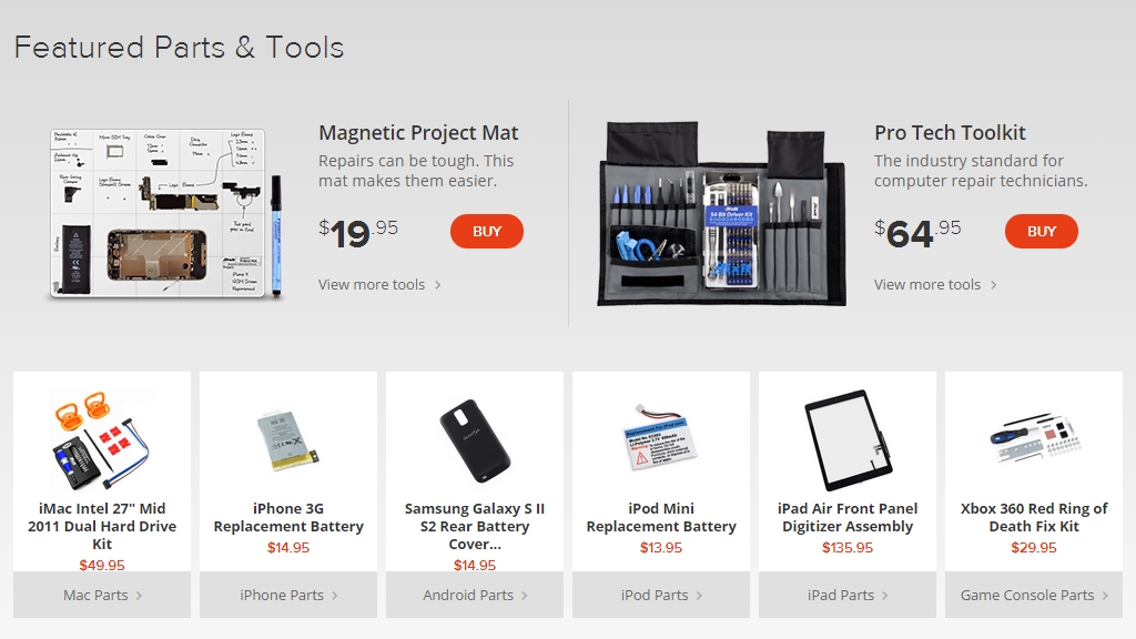 iFixit в качестве экспертного издания, в рамках которого различным испытаниям и разборке подвергались популярные мобильные гаджеты. Группа энтузиастов с инженерным образованием изучала ведущие модели смартфонов и планшетов на предмет ремонтопригодности и раскрывала все секреты дорогостоящих премиальных продуктов. Нередко они находили дешевые заменители заявленных в документации комплектующих, уличая производителей в недобросовестности. Благодаря труду команды