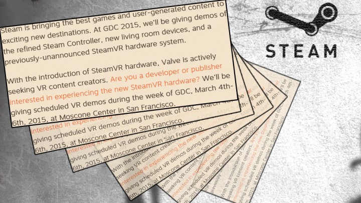 SteamVR, который будет адаптирован под технологии виртуальной реальности. Причем демонстрация станет подкреплена некими устройствами.