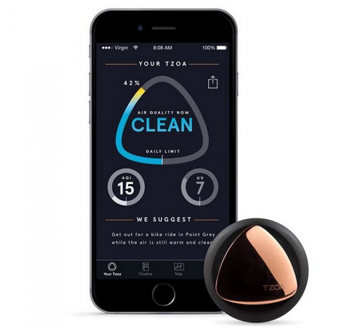 Для этого потребуется сенсор в виде брелока, который вешается на одежду или сумку и всегда будет на связи с вашим смартфоном. С его помощью измеряется качество воздуха, температура, атмосферное давление, уровень освещенности и ультрафиолетовое излучение. Владелец принимает решение выйти из зоны с плохим качеством воздуха, услышав сигнал от датчика.