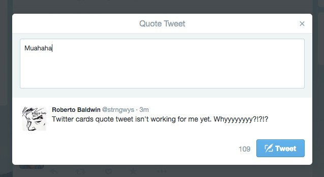 Twitter, как известно, занимает часть сообщения, и без того ограниченного 140 символами. Чужой текст разрешалось корректировать, сокращать или дописать что-то. Но теперь все это в прошлом — новый способ цитирования предусматривает аналог «скриншота» посторонней записи, прикрепляемой к вашему сообщению длиной в 116 символов. Удобно, экономит место на экране и позволяет писать более длинные комментарии к ретвитам. Веб-версия