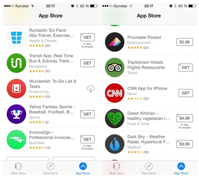 iOS-гаджета, в паре с которым связан носимый гаджет. Уже сейчас каждый желающий может ознакомиться с ассортиментом предложенного программного обеспечения в магазине