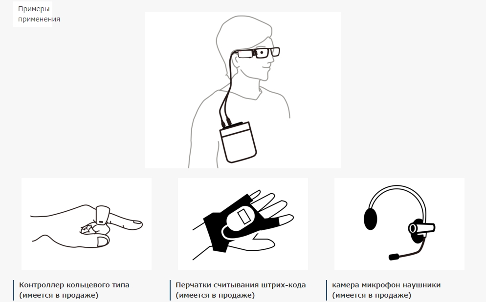 Гаджет автономен и способен проработать с различными внешними устройствами. Разработчик предлагает коммутировать очки со смартфоном, планшетом или любым другим коммерческим устройством на базе