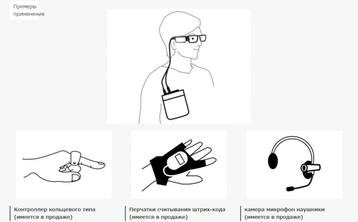 Toshiba предлагает и специальное кольцо управления, либо перчатку со считывателем штрих-кода, либо наушники с микрофоном и камерой (все это также поступит в продажу в качестве отдельных аксессуаров).