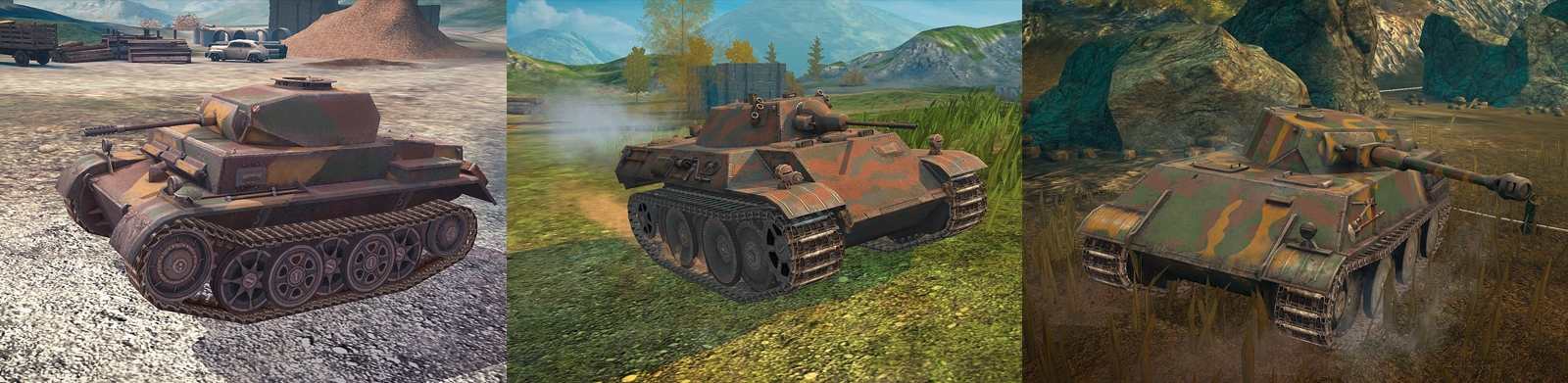 — III уровень. Pz.Kpfw. II Ausf. G (Pz II G); — IV уровень. Pz.Kpfw. II Luchs; — V уровень. VK 16.02 Leopard; — VI уровень. VK 28.01; — VII уровень. Spähpanzer SP I C; — VIII уровень. Spähpanzer Ru 251 (Ru 251).