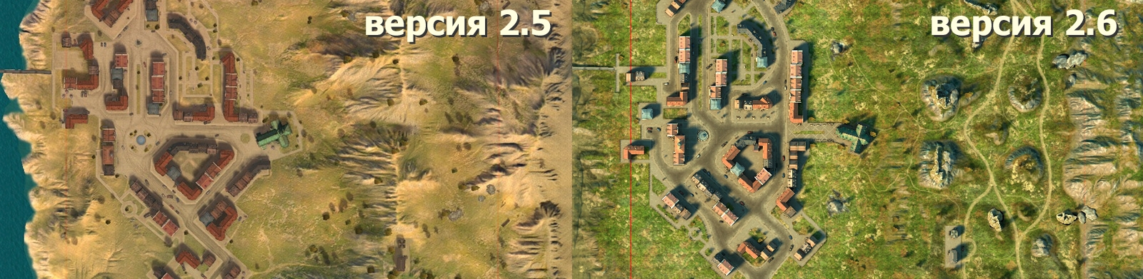 Теперь ставка на легкие и средние танки. Изменен ландшафт, добавлены простреливаемые окна, снижена высота горы (на 7 метров, теперь она стала менее важной стратегической целью), появился полноценный фланг в западной части, снижена нагрузка на городские бои и многое другое.